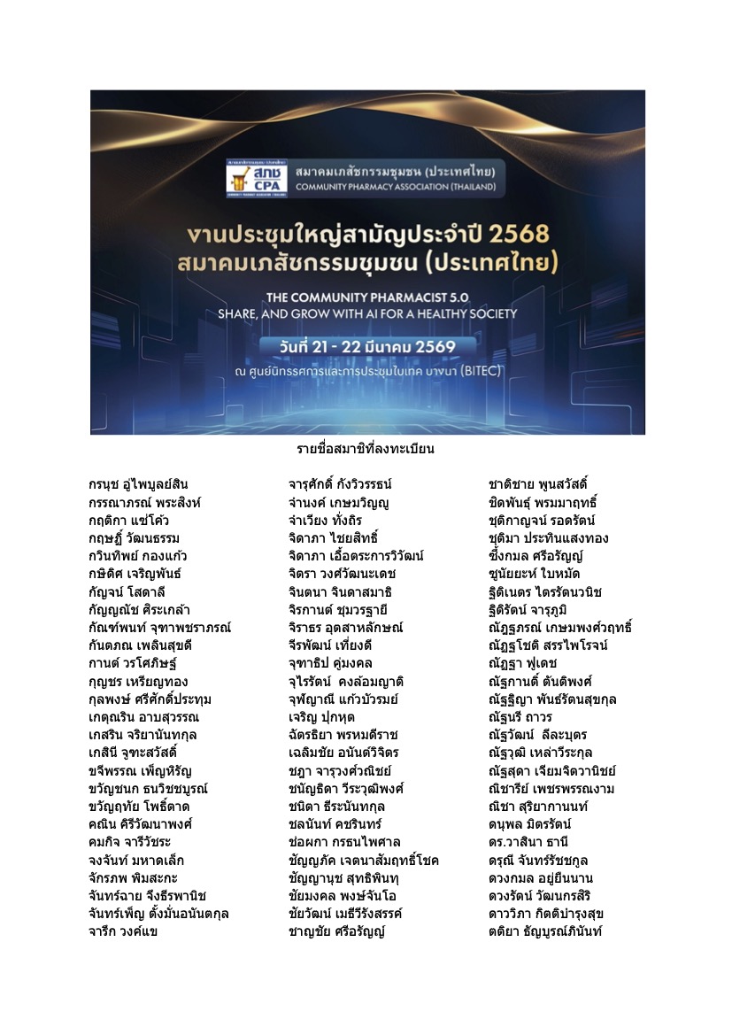 สมาคมเภสัชกรรมชุมชน (ประเทศไทย) ใช้คุกกี้เพื่อพัฒนาประสิทธิภาพ และประสบการณ์ที่ดีในการใช้เว็บไซต์ของคุณ คุณสามารถศึกษารายละเอียดได้ที่
