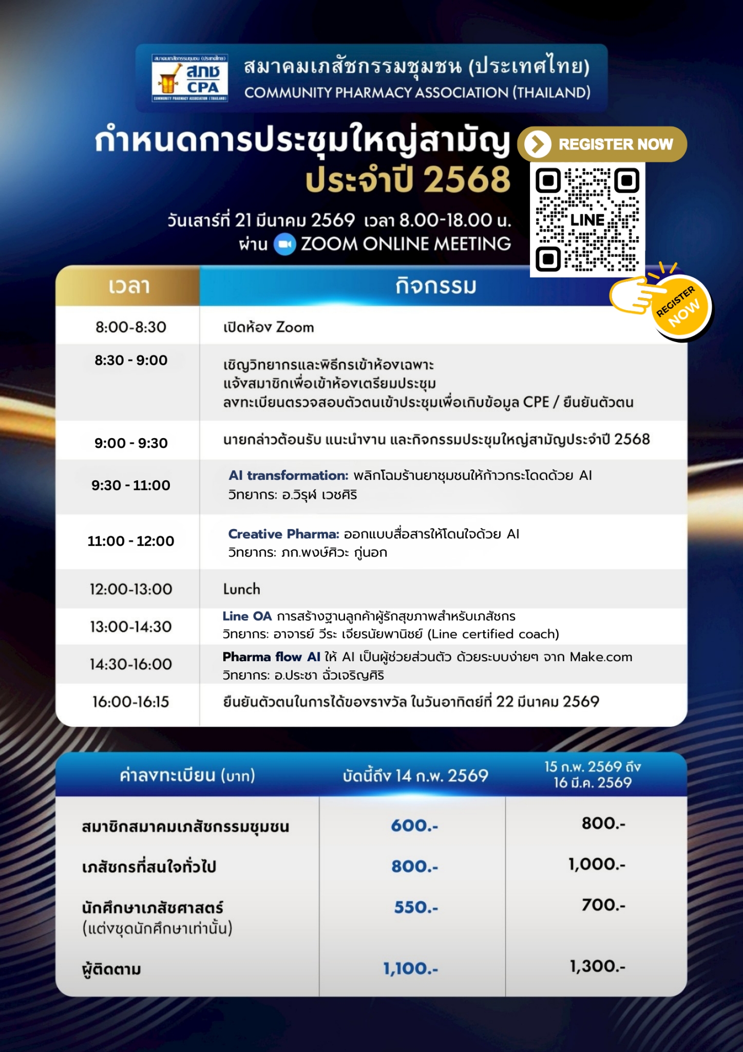 #งานประชุมใหญ่สามัญประจำปี2568 #สมาคมเภสัชกรรมชุมชน #PharmacyAI #เภสัชกรชุมชน #SmartPharmacy