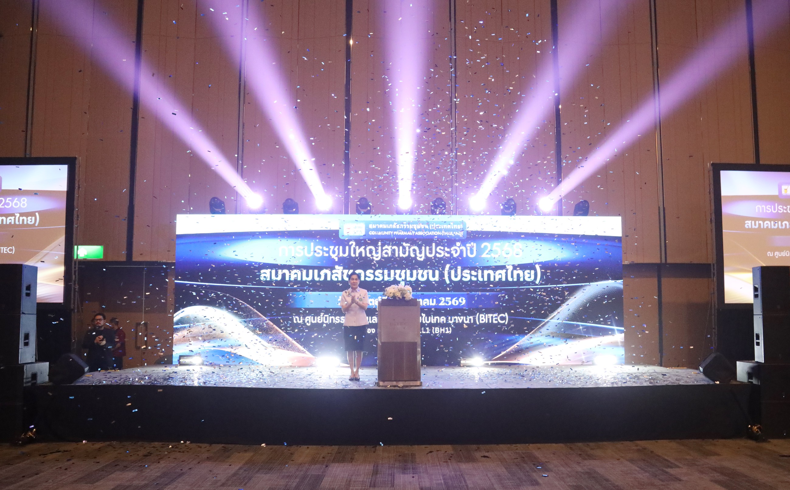 สมาคมเภสัชกรรมชุมชน (ประเทศไทย) ได้จัด งานประชุมใหญ่สามัญประจำปี 2568 เมื่อวันอาทิตย์ที่ 22 มีนาคม 2569 เวลา 07.00 – 18.00 น. ณ ห้อง BH1 ศูนย์นิทรรศการและการประชุมไบเทค บางนา โดยได้รับความสนใจจากสมาชิกและเภสัชกรที่เข้าร่วมงานอย่างต่อเนื่องตลอดทั้งวัน การประชุมครั้งนี้จัดขึ้นภายใต้แนวคิด “Community Pharmacist: Connect Share Growth with AI Healthy Society” มุ่งเน้นการเชื่อมโยงองค์ความรู้ การแลกเปลี่ยนประสบการณ์ และการเสริมศักยภาพเภสัชกรชุมชนให้พร้อมรับการเปลี่ยนแปลงของระบบสุขภาพและเทคโนโลยีในยุคปัจจุบัน